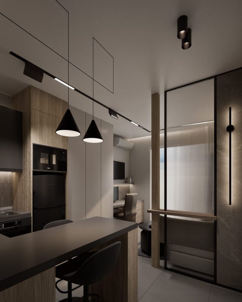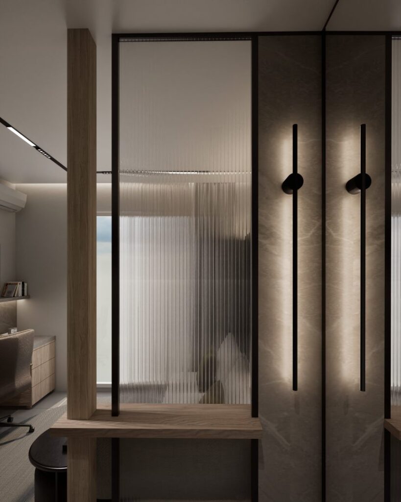 Compact Studio is designed to maximize every square meter with smart, efficient layouts that reflect a contemporary lifestyle. Located in Northern Greece, the studio embraces minimalism, creating an inviting and functional space despite its compact size. With a refined approach to materials, Compact Studio combines wood, tiles textures, metal fitxtures, striped glass and other surfaces to craft an environment that feels both open and intimate. Striped glass partitions allow light to flow freely while preserving privacy, creating flexible zones that shift seamlessly from one purpose to another.